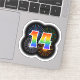 Dieses lustige, aufregende Aufkleber-Design zeichnet sich durch ein farbenprächtiges, aufstechendes, feierliches Feuerwerk mit inspiriertem Muster aus, zusammen mit der Zahl "14", die ein buntes Regenbogenmuster wie Spektrum oder Farbverlauf aufweist. Ein aufregender Aufkleber wie dieser kann Spaß machen, wenn jemand zum vierzehnten Geburtstag feiert, oder vielleicht zum vierzehnten Hochzeitstag eines Paares, oder zu einem anderen 14. Ereignis. [~Z0000362]