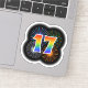Dieses lustige, aufregende Aufkleber-Design zeichnet sich durch ein farbenfrohes Muster aus, das durch das Bersten von feierlichen Feuerwerken inspiriert wird, sowie durch die Zahl "17" mit einem farbenfrohen Regenbogen-inspiriert Spektrum oder Farbverlauf. Ein solcher Aufkleber könnte vielleicht zum Feiern des siebzehnten Geburtstags von jemandem verwendet werden, oder vielleicht zum siebzehnten Hochzeitstag eines Paares, oder zu einem anderen 17. Ereignis. [~Z0000362]