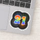 Dieses lustige, lebendige Aufkleber-Design zeichnet sich durch ein farbenprächtiges, aufstechendes, feierliches Feuerwerk inspiriert, zusammen mit der Zahl "21" mit einem farbenfrohen Regenbogenmuster aus dem Spektrum oder dem Gradientenmuster aus. Ein solcher Aufkleber kann zum Feiern des einundzwanzigsten Geburtstags verwendet werden, oder vielleicht zum 21. Hochzeitstag eines Paares, oder zu einer anderen 21. Veranstaltung. [~Z0000362]