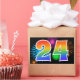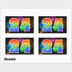 Dieses lustige, lebendige Aufkleber-Design zeichnet sich durch ein farbenprächtiges, feierliches Feuerwerk mit inspiriertem Muster aus, zusammen mit der Zahl "24" mit einem farbenfrohen Regenbogen-inspirierten Farbverlaufsmuster auf schwarzem Hintergrund. Aufkleber wie diese können in einem Party zum vierundzwanzigsten Geburtstag von jemandem verwendet werden, oder vielleicht zum vierundzwanzigsten Hochzeitstag eines Paares, oder zu einem anderen 24. [~Z0000324]