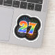 Dieses lustige, lebendige Aufkleber-Design zeichnet sich durch ein farbenprächtiges Muster aus, das durch das Bersten von feierlichen Feuerwerken inspiriert wird, sowie durch die Zahl "27" mit einem bunten Regenbogen-ähnlichen Spektrum oder Gradientenmuster. Ein lustiger Aufkleber wie dieser kann vielleicht zum Feiern des siebenundzwanzigsten Geburtstags verwendet werden, oder vielleicht zum siebzigsten Hochzeitstag eines Paares, oder zu einer anderen 27. Veranstaltung. [~Z0000362]
