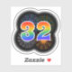 Dieses lustige, lebendige Aufkleber-Design zeichnet sich durch ein farbenprächtiges, aufstechendes, feierliches Feuerwerk inspiriert, zusammen mit der Zahl "32" mit einem farbenfrohen Regenbogenmuster wie Spektrum oder Farbverlauf aus. So ein lustiger Aufkleber kann zum Feiern des zweiunddreißigsten Geburtstages eines Mannes verwendet werden, oder vielleicht zum zweiunddreißigsten Hochzeitstag eines Paares oder zu einem anderen 32. Ereignis. [~Z0000362]