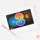 Fun Fireworks + Regenbogenmuster "3" Ereignisnumme Rechteckiger Aufkleber