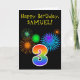 Fun Fireworks + Regenbogenmuster "3" Geburtstag # Karte