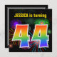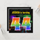 Dieses lustige, lebendige Geburtstagsfeierdesign zeichnet sich durch ein farbenprächtiges, durch das Bersten von feierlichen Feuerwerken inspiriert Muster aus. Die Zahl "44" zeigt ein buntes Regenbogenspektrum oder ein Farbverlaufsmuster. Der Name auf der Vorderseite kann angepasst werden. Auf der Rückseite finden Sie benutzerdefinierte Informationen zum Party. Geburtstagsfeierlichkeiten wie diese können genutzt werden, um Gäste zu einer Geburtstagsparty einzuladen, die zum Feiern des vierundvierzigsten Geburtstages von jemandem veranstaltet wird. [~Z0000337]