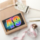 Dieses lustige, lebendige Aufkleber-Design zeichnet sich durch ein farbenfrohes Muster aus, das von feierlichen Feuerwerken inspiriert wird, sowie durch die Zahl "49" mit einem farbenfrohen Regenbogen-inspirierten Farbverlaufsmuster auf schwarzem Hintergrund. Aufkleber wie diese können in einem Party zum neunundvierzigsten Geburtstag von jemandem verwendet werden, oder vielleicht zum neunundvierzigsten Hochzeitstag eines Paares, oder zu einem anderen 49. [~Z0000324]