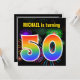 Dieses lustige, lebendige Geburtstagsfeierdesign besticht durch ein farbenfrohes, durch das Bersten von feierlichen Feuerwerken inspiriert Muster, ebenso wie durch die Zahl "50" mit einem farbenfrohen Regenbogen-inspirierten Spektrum oder Farbverlaufsmuster. Der Name auf der Vorderseite kann personalisiert sein. Auf der Rückseite finden Sie benutzerdefinierte Details zum Party. Geburtstagsfeierlichkeiten wie diese werden vielleicht ausgesandt, um Gäste zu einer Geburtstagsparty einzuladen, die zum Feiern des fünfzigsten Geburtstages von jemandem veranstaltet wird. [~Z0000337]