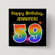 Dieses lustige, lebendige Knopfdesign zeichnet sich durch ein farbenprächtiges, aufstechendes, feierliches Feuerwerk aus, das mit der Zahl "59" inspiriert ist, die ein buntes, von Regenbogen inspiriert Spektrum oder ein Farbverlauf aufweist. Es enthält auch einen personalisierten Namen und eine Veranstaltungsnachricht, wie zum Beispiel einen Geburtstagsgruß von "Happy Birthday". Ein solcher Knopf könnte von den Teilnehmern einer Geburtstagsparty getragen werden, die zur Feier des neunundfünfzigsten Geburtstages von jemandem gehalten wird. [~Z0000334]