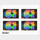 Dieses lustige, lebendige Aufkleber-Design zeichnet sich durch ein farbenprächtiges, feierliches Feuerwerk mit inspiriertem Muster aus, zusammen mit der Zahl "61" mit einem farbenfrohen Regenbogen-inspirierten Farbverlaufsmuster auf schwarzem Hintergrund. Sticker wie dieser können als kleines Geschenk gegeben werden, während man den 61. Geburtstag von jemandem feiert, oder vielleicht zum sechzigsten Hochzeitstag eines Paares oder zu einem anderen 61. Ereignis. [~Z0000324]
