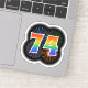 Dieses lustige, lebendige Aufkleber-Design zeichnet sich durch ein farbenprächtiges Muster aus, das durch das Bersten von feierlichen Feuerwerken inspiriert wird. Die Zahl "74" mit einem farbenfrohen Regenbogen-artigen Spektrum oder Gradientenmuster. Ein aufregender Aufkleber wie dieser kann vielleicht bei der Feier des vierundsiebzigsten Geburtstags verwendet werden, oder vielleicht ein vierundsiebziges Hochzeitstag, oder ein anderes 74. Ereignis. [~Z0000362]
