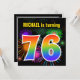 Dieses lustige, lebendige Geburtstagsfeierdesign besticht durch ein farbenprächtiges, aufstechendes, feierliches Feuerwerk, das inspirierte Muster, zusammen mit der Zahl "76" mit einem farbenfrohen Regenbogen-inspiriert Spektrum oder Gradientenmuster. Der Name auf der Vorderseite kann angepasst werden. Auf der Rückseite finden Sie benutzerdefinierte Informationen zum Party. Geburtstagsfeierlichkeiten wie diese werden potenziellen Gästen für eine Geburtstagsparty geschickt, die zur Feier des sechsundsiebzigsten Geburtstages von jemandem abgehalten wird. [~Z0000337]