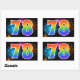 Dieses lustige, lebendige Aufkleber-Design zeichnet sich durch ein farbenfrohes Muster aus, das von feierlichen Feuerwerken inspiriert wird, sowie durch die Zahl "78" mit einem farbenfrohen Regenbogen-inspirierten Farbverlaufsmuster auf schwarzem Hintergrund. Aufkleber wie diese könnten vielleicht bei einem Party verwendet werden, das den achtundsiebzigsten Geburtstag eines Mannes feiert, oder vielleicht zum achtundsiebzigsten Hochzeitstag eines Ehepaars oder zu einem anderen 78. Ereignis. [~Z0000324]