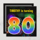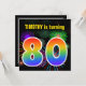 Dieses lustige, lebendige Geburtstagsfeierdesign besticht durch ein farbenprächtiges, aufstechendes, feierliches Feuerwerk, das inspirierte Muster, zusammen mit der Zahl "80" mit einem farbenfrohen Regenbogen-inspiriert Spektrum oder Gradientenmuster. Der Name auf der Vorderseite kann angepasst werden. Auf der Rückseite finden Sie anpassbare Details zum Party. Geburtstagsfeierlichkeiten wie diese werden vielleicht ausgesandt, um Gäste zu einer Geburtstagsparty einzuladen, die zum Feiern des achtzigsten Geburtstages von jemandem veranstaltet wird. [~Z0000337]