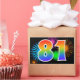 Dieses lustige, lebendige Aufkleber-Design zeichnet sich durch ein farbenfrohes, von feierlichen Feuerwerken inspiriertes Muster aus, zusammen mit der Zahl "81" mit einem bunten, von Regenbogen inspirierten Farbverlaufsmuster auf schwarzem Hintergrund. Aufkleber wie diese können bei einem Party zum 81. Geburtstag eines Mannes verwendet werden, oder vielleicht zum 81. Geburtstag eines Ehepaars oder zu einem anderen 81. [~Z0000324]