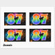 Dieses lustige, lebendige Aufkleber-Design zeichnet sich durch ein farbenfrohes, von prominenten Feuerwerken inspiriertes Muster aus, zusammen mit der Zahl "87" mit einem bunten Regenbogenmuster auf schwarzem Hintergrund. Sticker wie dieser können als kleines Geschenk gegeben werden, während man den siebenundachtzigsten Geburtstag von jemandem feiert, oder vielleicht für ein Paar's siebenundachtzigste Hochzeit, oder ein anderes 87. Ereignis. [~Z0000324]