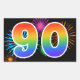 Fun Fireworks + Regenbogenmuster "90" Ereignisnumm Rechteckiger Aufkleber