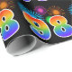 Dieses lustige, lebendige Verpackungspapier-Design zeichnet sich durch ein buntes Muster aus, das von feierlichen Feuerwerken inspiriert wird, zusammen mit der Zahl "98", die ein buntes, von Regenbogen inspiriert Farbverlaufsmuster auf schwarzem Hintergrund aufweist. Ein solches Papier könnte vielleicht verwendet werden, wenn Geschenke oder Geschenke für den achtundneunzigsten Geburtstag eines Mannes oder vielleicht für den achtundneunzigsten Hochzeitstag eines Ehepaars oder für ein anderes 98. Ereignis verpackt werden. [~Z0000322]