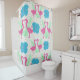 Die Dusche wird durch den hübschen rosa Flamingo-Duschvorhang gemildert.