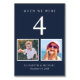 Genießen Sie die Dekoration der Hochzeitsfeier mit den marineblauen Tischnummern, in denen jede Tischnummer den Fotos der Braut und des Bräutigams im gleichen Alter entspricht. Zum Beispiel, für Tabelle 4, personalisieren Sie die Tischnummer mit "4" und fügen Sie Fotos der Braut und Bräutigam, wenn sie 4 Jahre alt waren.
