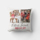 Auf diesem stilvollen Kopfkissen sind zwei Fotos, die Freundschaften mit dem Text ehren, Besties Forever in elegantem Text, dann drei Namen unter den Fotos, die Sie anpassen können, um Ihre eigene Keepséeenfreundschaft Kissen