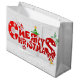 Fun fröhlicher Weihnachtstext auf weißem Holz Große Geschenktüte