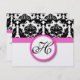 Vintage, moderne Schwarz-Weiß-Damast-Muster mit hellen Fuchsia Pink Trim Hochzeitseinladungen. Ideal für Rokoko Barock, mittelalterliche Renaissance, Art Deco Art Nouveau, Roaring 20s Gatsby, Viktorianische Hochzeiten oder elegante Bauernhäuser Hochzeiten Themes Orte.