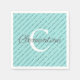 Fun Girly Aquamarin Blue Glitzer Streifen Monogram Serviette