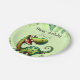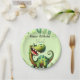 Bring a touch of playful charm to your party table with this adorable dinosaur birthday paper plate! Featuring a cute animated dinosaur set against a soft green background, the design is framed by lush jungle leaves for a fun, tropical feel.