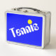 Fun Groovy White Yellow TENNIS Text auf Hellblau Metall Brotdose