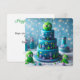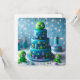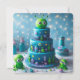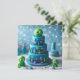 NIEDLICHER PLATZ UND ALIEN SPIELTEN KINDERGEBURTSTAG LAYER CAKE AUF DER VORDERSEITE DER KARTE. KOMPLETT BEARBEITBARE KOPIE AUF DER RÜCKSEITE.