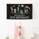 Ein super lustiges Geburtstagsbanner für die geborenen im Oktober - ein Halloween-Kostüm-Party! Mit schwarzem Hintergrund, bunten Sternkonfetti, Cartoon extravagante Kleidungsfiguren, Geister, Monster etc. Personalisieren Sie Ihre Daten mit dem Namen und dem Alter des Geburtstagskindes.