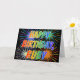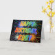 This fun, vibrierend, multicolored birthday greeting card design feature the message "HAPPY BIRTHDAY" and the common first name "RUBY" with the letters having a colorbol rainbow spectrum like gradient coloring pattern. The background of the front feature a colorful pattern inspired by the appearance of bursting celebratory fireworks. The inside feature a custom greeting message, or could perhaps be cleared and left blank if a message is to be written by hand instead. A greeting card like this could be a fun way to celebrate the birthday of somebody named Ruby. [~ Z0000350]