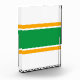 Dieses bunte Design mit goldgelben schwebenden Streifen unterstreicht einen breiten, hellgrünen horizontalen Mittelstreifen vor weißem Hintergrund.