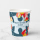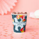 Fun Jigsaw Puzzle Motto Custom Accent Image 8oz Paper Cups, feature a partial close-up of jigsaw puzzle pieces with a custom image on top, adding a personal touch. Replace it to set an accent or to reflect the party theme. In the center is a placeholder for the sample text "Happy Birthday, Jayden! and the party celebration date". Any unwanted text placeholder leave empty. All elements are color customizable.