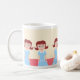 Eine niedliche Retro-Kunst Mitte des Jahrhunderts Stil blauen Hintergrund fünfziger Mädchen cartoon Charakter Muster digitale Kunst Illustration Vintag ästhetische illustrierte Spaß Digital Toon Art sukzy Jet Set Lifestyle Design Kaffee, Tee, Kakao-Keramik oder Reisetug. Holen Sie sich heute eine lustige und niedliche Mustertasse.