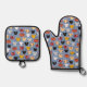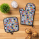 Fun Kitty Cat Pattern Blau Ofenhandschuh & Topflappen-Set
