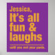 "Es macht Spaß und lacht, bis du deine Hose nass machst." Ändern Sie das Textfeld in das gewollt Textfeld. Sie können auch den Schriftart und seine Größe und Farbe ändern, indem Sie die Funktion "Anpassen" verwenden, sowie weitere Textfelder hinzufügen, wenn Sie möchten. Außerdem können Sie die Hintergrundfarbe dieses Elements in die von Ihnen gewollt Farbe ändern. Sehen Sie in meinem Laden für weitere Artikel mit diesem Design.