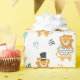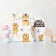 Niedliches und lustiges Löwenmuster-Design, mit einigen Löwen in Pullover mit Streifen oder Polka-Punkten, einige mit schwarzem Top Hut und Bogen-Krawatte, und einige mit einem Ballon. Fester weißer Hintergrund.