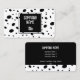 This custom double sided business card design has an original abstract art background with a bold black and white design with a fun dot pattern for a modern chic style and it is ready to personalize for custom cards for any business or profession. Art copyright Ann Powell all rights reserved.