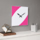 Fun Moderne, helle, weiße und rosafarbene moderne Quadratische Wanduhr
