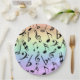 Eine Reihe von schwarzen Noten auf sanften pastellfarbenen Regenbogen-Party-Tellern. Ideal für Partys, die Musik lieben! Passende Servietten sind erhältlich. Designed by Heard_, and 369.
