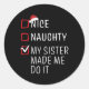 Fun Naughty Nice Weihnachtsfamilie Pajama Männer F Runder Aufkleber