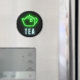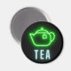 Das Design eines Fun-Küchenmagneten zeichnet sich durch neongrüne Teekanne mit "Tee"-Neontext auf schwarzem Hintergrund aus