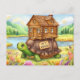 Versenden Sie eine charmante Ankündigung mit unserer einzigartigen New Address Postcard mit einer ansprechenden Illustration: eine gemütliche Zuhause, schmal auf dem Rücken einer Schildkröte, gemütlich durch ein malerisches Feld an einem ruhigen Teich spaziert. Dieses skurrile Bild zeigt perfekt das Gefühl, sich in Ihrem eigenen Tempo zu bewegen und Ruhe in einer neuen Umgebung zu finden.