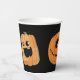 Diese niedlichen Papiertassen aus Halloween-Party sind mit einem schwarzen Hintergrund und bezaubernden Kürbisillustrationen versehen. Das perfekte Design für ein lustiges Halloween- oder Kürbisschnitzel-Party!