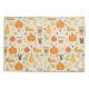 Dieses Design zeigt ein reizvolles fallthematisches Muster mit gemütlichen Herbstelementen. Das Design umfasst Abbildungen von Kürbissen, Kürbiskuchenscheiben, überzogen mit Sahne, warme Herbstgetränke in Go-Bechern und Butternut Squash. Dazwischen gibt es Zimt, Sternanis, Grünpflanzen, Herbstblätter, Eicheln und kleine Beeren, alles Set mit einem weichen Cremeuntergrund. Das Muster strahlt eine warme und einladende Atmosphäre aus, perfekt um die Aromen und Farben der Herbstsaison zu feiern.