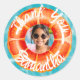 Add a splash of fun to your celebration with these lively tropical-themed stickers, perfect for a pool party. They feature your favourite photo in the centre, encircled by an orange floaty, the words “thank you”, and a space for your personalised name. These vibrant stickers are ideal for favour bags, sealing gifts, and adding a festive touch to your party favours. They’re especially suitable for summer gatherings, including kids’ parties, and bring a burst of fun to any event.