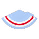 Dieses lustige, sportliche Design zeichnet sich durch einen weißen Streifen am unteren Rand aus, der mit einem hellen, roten Streifen auf pastellblauem Hintergrund gespalten wird.