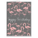Ein kitschiges, lustiges Design eines pastellrosa Flamingo-Vogels im Muster. Niedliche Herde von Flamingo-Vögeln Thema. Rosa und grau mit Retrovibe. Originelles Design