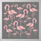 Ein kitschiges, lustiges Design eines pastellrosa Flamingo-Vogels im Muster. Niedliche Herde von Flamingo-Vögeln Thema. Rosa und grau mit Retrovibe. Originelles Design